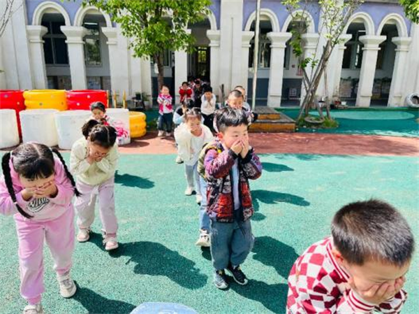 演练前,各班教师结合幼儿年龄特点,通过主题教育帮助幼儿认识安全标识、熟悉逃生路线,做好充分准备。随着警报声响起,演练正式开始!各班教师迅速组织幼儿用毛巾、衣物、手掌捂住口鼻,弯腰低姿,按预定路线有序撤离,全体师幼在规定时间内安全抵达操场集合点。