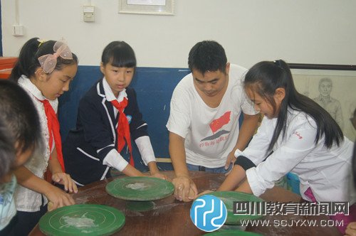 四川教育新闻网泸州9月17日讯(通讯员 胡仕容)9月16日下午,泸州市天化小学三、四年级部分学生们根据自身特点和兴趣爱好,选择了乡村少年宫的陶艺社团,在学校陶艺室里跟指导老师黎海平认真学习。看到一团普通的陶土在黎老师的手中变成了一个可爱的陶罐,再用竹签在上面刻下了花纹,一个工艺品就成现在大家面前,孩子们都跃跃欲试,纷纷动手尝试。