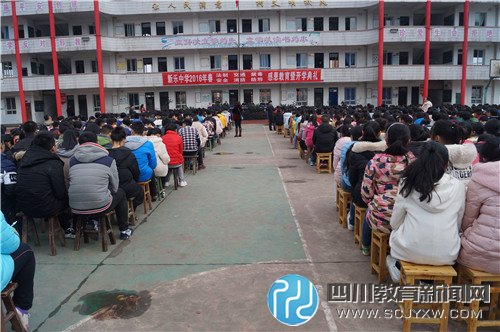 四川教育新闻网泸州2月25日讯(通讯员 何中莉)2月24日,纳溪区新乐中学2016年春期感恩教育暨开学典礼在庄严的国歌声中拉开了帷幕,学校校长及各部门领导进行了“法制、安全、卫生、禁毒、防邪、弘扬民族精神、推进‘感恩教育’专题讲座。讲座注重结合学校工作和学生生活实际,全校学生专心听讲,认真作笔记,进一步领会和掌握了相关法律法规、安全、卫生、禁毒、防邪知识。既懂得了用法律知识保护自己的重要性,又懂得了在校内校外运用所学的法律法规知识与违法行为作斗争;既明确了本期德育教育的工作重点,又明确了学习常规和本期学习任务,也深刻领会到节能减排的重要性,决心从“收心、决心、恒心、爱心、留心、良心”六个方面努力学习,树立雄心壮志,懂得感恩,养成良好的品德行为习惯。