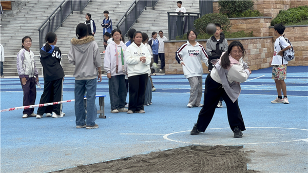 赛场上,是突破与超越的篇章:跳高选手一次次腾空而起,越过横杆时带起的风,是青春不服输的姿态;跳远沙坑旁,每一道扬起的沙痕,都是向“更远”发起的挑战;铅球赛场的弧线里,力量与技巧碰撞出精彩的落点——无论是女子组4公斤铅球的稳稳投掷,还是男子组5公斤铅球的有力迸发,少年们都在尝试中抵达新的高度。
