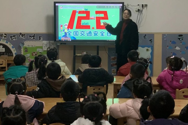 一是氛围营造,广泛宣传。幼儿园充分利用园内电子显示屏,滚动播放交通安全提示语与相关知识,在园内迅速营造出“人人关注交通安全、人人遵守交通规则”的浓厚宣传氛围。