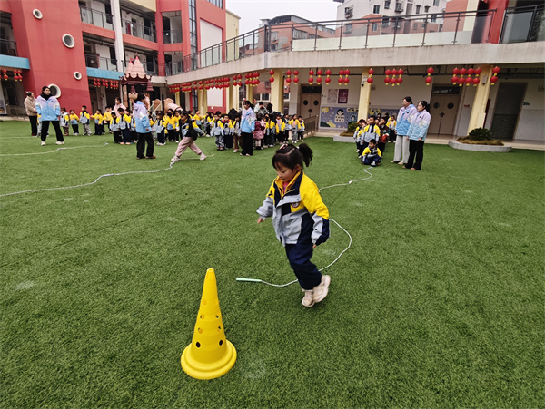 首先参赛的是大班的运动员们。赛场上,走S线、手足爬、绕杆、跳绳等项目有序开展,每个项目都兼具挑战与趣味。在你追我赶的竞赛中,孩子们不仅锻炼了身体协调性,更在协作与坚持中收获了满满的快乐,每一张笑脸都洋溢着运动带来的畅快。