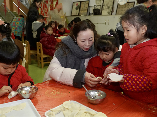 活动中,各年龄段的孩子们齐齐动手,搓汤圆、包饺子,小小的手儿传递着浓浓的温情。大班孩子在“共享大席”中体验传统九大碗的喜悦,中班孩子则围坐品尝美味火锅,在欢乐的氛围中,大班小主持人大声宣布“开席咯”,孩子们在老师的引导下有序入席,品尝自己参与制作的美食,体验劳动与分享的快乐。