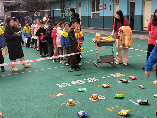 为鼓励少先队员们积极参与校园活动,践行少先队员的责任与义务,安岳县乐至街小学创新德育管理机制,将德育积分制巧妙融入日常德育工作,充分调动学生的积极性和主动性,让德育教育更具针对性和实效性。1月14日,安岳县乐至街小学开展了红领巾积分兑换活动,凭借“红领巾积分之星”奖状的同学们,迎来了趣味十足的套圈赢奖品环节。