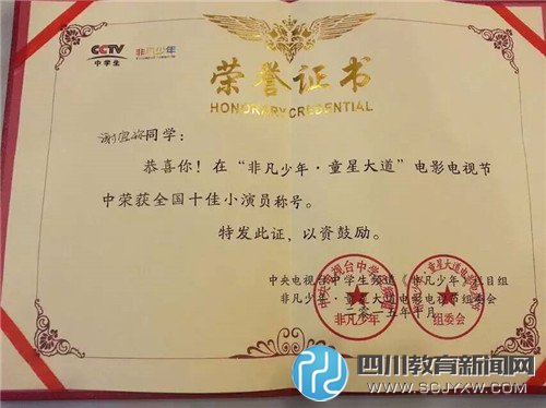 成都嘉祥外国语学校四年级二班 谢宜珎 每一个女孩心中都有一个美丽的梦想,华丽的礼服,炫彩的舞台,闪耀的荣光。而我也不例外。金秋10月,碧空如洗,凉爽舒适,路边的野花随风摇摆,默默祝福着秋的收获。而我,接到了来自北京人民大会堂的邀请,去参加中国首届童星大道电影电视节。 10月3日,我来到了蟹岛——北京最大的生态园。入住中央电视台为我们安排的小别墅。这里绿柳依依、翠竹林立、荷塘青青、瓜果飘香。你可以去滑草场一展身手,可以去生态园采蘑菇,还可以去蟹宫钓螃蟹……进了房间,正在整理行李的时候,突然听到门外传来一阵银铃般的笑声,撩开帘子一看,一个长腿瘦高个的女孩出现在我的面前。她高高的马尾、瓜子脸、大眼睛。咦,这人怎么这么面熟?我的脑袋立刻飞速旋转,想起来了,她正是那个少年作家——毛奕羽。我在网上读过她的作文,文笔清新、用词典雅,长辈们都说她的作文有大家闺秀的风范,那时我就梦想着有一天能跟这位优秀的小作家当面切磋学习,没想到竟在这儿碰上了……想着想着,我再也抑制不住内心的激动,立即略带疑惑地试着喊了一声:“毛奕羽?”她回过头来歪着脑袋皱了皱眉,好奇地问:“你是谁?”“我是谢宜珎。”还没等她回应,旁边一个阿姨恍然说道:“谢宜珎呀!哦,听冯老师说过,真是太有缘了!”原来这是毛奕羽的妈妈。我和毛奕羽真的很投缘,不一会儿就熟悉起来,有说有笑的,真像一对多年未见的老朋友。接下来的几天,我们几乎形影不离,她就像个大姐姐一样对我倍加照顾,让我的北京之行温暖如春。 10月5日,汽车载着盛装的我们经过庄严的天安门,来到了神圣的人民大会堂。人民大会堂的里面真是金碧辉煌、美轮美奂。小朋友们强压着内心的激动,依次走过红毯进入礼堂,个个昂首挺胸,神采飞扬,自信满满,每个小朋友的脸上都绽放着如花的笑靥,和着那红毯的颜色,真是靓丽极了!就是在这庄严的礼堂里,,即将举行《非凡少年.童星大道》电影电视节。组委会的工作人员还将根据小演员们在电视剧里的表现进行颁奖。而我,除了领奖之外,还将上台参演话剧《夺宝历险记》,在这个话剧里我扮演的角色是梦精灵。面对这样一个特别的舞台,我和伙伴们既兴奋又紧张,到了后台,我们一阵忙乱。演出时,平日经验丰富的我,或许因为紧张,亦或许因为太过激动,居然两次出场走错方向,幸亏没人看出来,否则可得让我难堪了。最搞笑的是,饰演魔王的演员在变脸的时候,居然出现了失误,有一张脸皮没有变掉,挂在了脸上,幸亏他及时将脸背对观众才没有被台下的一双双“火眼”识破。 最有意思的还是演出最后一部分——撒金币,当我们一起向台下抛下一枚枚金币的时候,台下的小朋友发现竟然是金币巧克力,立刻蜂拥而来,抢得热火朝天,还有人居然爬上了舞台。幸亏人民大会堂的保安训练有素,才及时阻止了踩踏事故的发生,唉,在这台上发生的一幕幕真是惊险刺激,令人难忘! 小小的失误,并没有影响我们的节目质量。颁奖开始,我们的话剧竟然荣获全国团体节目金奖,而我,也凭借在电视剧《银杏树上的枫叶》中出色的表现荣获全国十佳小演员。 北京之行真是令人难忘,不仅增长了我的见识,锻炼了我的胆量,最重要的是让我结识了一位好朋友—--毛弈羽,她的写作能力将是我努力的目标,从此,我将为梦想启航,一步一个脚印地站上更辉煌的舞台!
