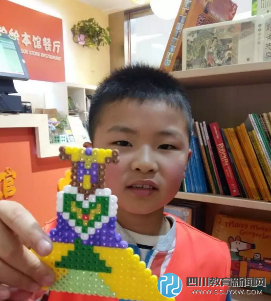 很快我们来到了一座富丽堂皇,宽大无比的商场。紧接着,我们排着整齐的队伍来到了电梯口,有秩序地上了电梯。不一会儿,我们到了一家书店,发现里面有人正在玩“拼豆豆”,很多同学都在窃窃私语道:应该是让我们拼豆豆吧!