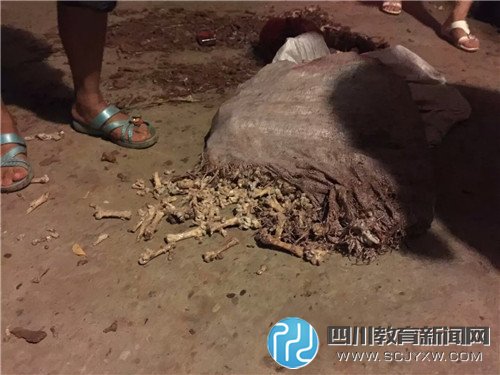 网友@放假的干活 : 我说说我听到的传闻,和我见到的,首先我声明,我只说自己听见的和亲眼所见的,绝不造谣生事,公元2015年9月4号下午五点左右,福德到南充的客车返回福德,福德小学初中部食堂有两大袋货,当时叫唐华强(好像是他)把他送到学校,结果在送往学校的途中掉下一小口袋,路边的人捡到打开一看,发现全是发臭的鸡骨,后面经过询问才得知是学校食堂的货物,(有人开始就猜测是学校用来熬骨头汤泡米粉的)........然后人越来越多.......越来越多..........后面有人就去学校找麻烦了,闹事的越来越多.......后面.......后面........(骨头被埋,然后被人挖出来饿了).........反正有很多细节说不清楚,反正闹了很久,(群众太多罗家派出所带不走人,学校被围得水泄不通)大约凌晨12点人群才散开,我晚上10点离开现场的,(听说老板被押走的时候挨揍了),我也不做评论,我只说我知道的看到的闻到的。希望严查,反正、、很臭、、、有点卤香。我走近拍了几张照片差点吐出来。 ![]()