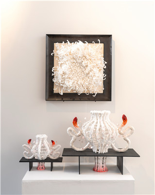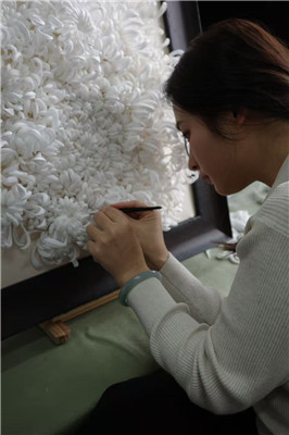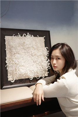 “东方非遗的材料本身就有强大的生命力,非遗绒花、非遗通草花,是我在创作中选取的媒介,我现在所做的创作,目的和核心都是希望我自己所处的90后这一代,包括00后还有学生群体能更了解东方之美,也能认识到具有当下时代特色的东方审美。我的作品《绒启》试图打破非遗绒花头饰小件的局限,蛇在东方文化中既是蛰伏的地脉,又是新生的符号,绒花有‘荣华’的祝福之意;《万菊共生》使用的非遗通草花,化做菊花是东方文化高洁、隐逸的精神符号,是当代对东方文化的美学回应。”艺术家黄鹿在采访中说到。