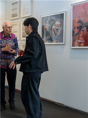 “水在创作中是东方文明的产物,我选择水印木刻版画这样的创作媒介,想让西方更多地了解:不仅是油画的‘油’适用于艺术创作,‘水’在绘画的表现中也有独特韵味。我的作品中带有我对典故的引用,比如关于探讨治国之道的《面见梁惠王》,是战国时期思想家孟子与魏国君主梁惠王之间的著名对话。我创作这幅作品,是希望我们00后这一代对历史会有自己的思辨,同时也想让国际友人能更多地了解东方文化的哲思。而马作为东方绘画中经典的意象,在我的创作中反复出现,比如《告别2》《马》,刚好2026年也是马年,这幅作品带到旧金山,某种意义上,我也想表达一种东西方情谊的联结。”李杨在采访中说到。