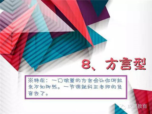 在我们的学习中,总会遇到各式各样奇葩一样存在的老师。下面通过网友们总结出来的这十种最不受欢迎的老师中,你遇到过哪一种或哪几种呢?其实,小编到是觉得第八种和第十种完全应该列入受欢迎的类型啊,一个略萌,一个很酷。好吧关键还得看颜值!
