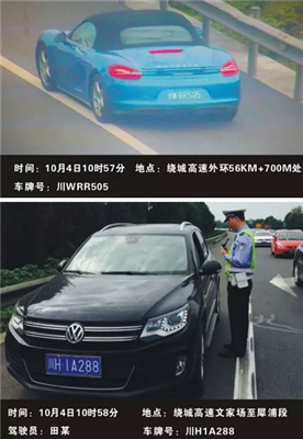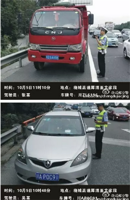 国庆大假期间,首先播一个喜大普奔的好消息:全省主要高速公路、省国道和景区周边道路交通秩序良好,道路交通事故跟去年相比,少了一大截;然并卵,成都市交警通过交警门户网站每天曝光10辆违规车辆,看看上面有谁谁谁?另外,有节操的小编提醒你,记得通过正规渠道查询自己是否“交通违章”,别被骗子坑了~~ 四川省道路交通形势平稳 ●国庆假期四川高速公路上单向总流量达1347万余台次,日均单向通行量达192万余次,同比增长13.5%。 ●全省主要高速公路、省国道和景区周边交通秩序良好,未发生长时间、大面积交通拥堵,仅发生一起死亡3人事故,道路交通事故较去年同期明显下降。 ●全省各级公安交警重点查处超员、超速、高速公路占用应急车道等严重交通违法。据统计,全省高速公路共查处占用应急车道违法行为5000余起。 机动车侵走绕城高速 418辆车挨罚 ●成都交警在绕城高速总共查处、纠正侵走应急车道违法车辆418辆,其中民警现场查处107辆,电子眼抓拍311辆。这些违法车辆将受到记6分,罚款200元的处罚。 ●国庆期间,成都交警门户网站每天曝光10辆侵走高速应急车道的车辆信息。曝光内容包括违法时间、地点、驾驶员的姓氏及车牌号,希望通过这样的方式给违法的驾驶员以警示。 ●这些违法车辆既有成都牌照的车,也有省内甚至外省的车辆。成都交警提醒广大驾驶员,无论是本地车辆还是外地车辆违法,都将及时转递、处罚。 这些车主,你因侵走应急车道被成都交警公开曝光了▼