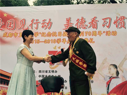 四川教育新闻网9月1日成都讯(赖波) 一双大手牵这小手,一个小小的礼物,一个深情地拥抱……今天上午,成都市玉林1000来名 学生在“温馨”中迎来开学典礼。92岁的老红军张文辉也来到现场,以自己的亲身经历告诉师生,现在“祖国好了,我们也都好了”。