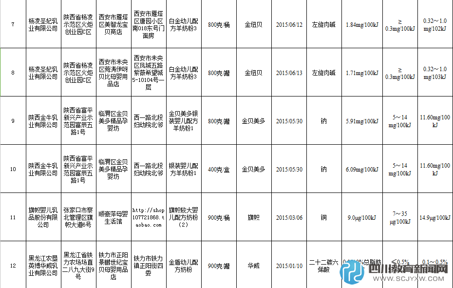 不合格奶粉信息 四川教育新闻网成都11月20日讯 11月20日,四川新闻网记者从国家食药监总局获悉,日前,食药监总局发布了关于12批次婴幼儿配方乳粉不合格的通告。四川新闻网记者走访了几家婴幼儿奶粉专卖店暂未发现通告所披露的12批次不合格奶粉。 据悉,2015年7月至9月,国家食品药品监督管理总局对婴幼儿配方乳粉开展了国家专项监督抽检,覆盖国内93家在产企业的产品及部分进口产品。抽检国产样品513批次,检出不合格样品12批次,其中9批次为羊奶粉。12批次不合格样品中,不符合食品安全国家标准,存在食品安全风险的样品4批次;不符合企业标准或产品包装标签明示值,但不存在食品安全风险的样品8批次。抽检进口样品120批次,未检出不合格样品。 不符合食品安全国家标准的国产婴幼儿配方乳粉4批次,涉及3家企业,分别为:陕西红旗乳业科技有限公司生产的贝格塔尼金装婴儿配方羊乳粉(1段)、贝格塔尼金装较大婴儿配方羊乳粉(2段)2个批次,分别检出菌落总数、硒不符合食品安全国家标准;陕西红星乳业有限公司生产的养悦婴儿配方羊奶粉(1段)1个批次,检出蛋白质不符合食品安全国家标准;河南金元乳业有限公司生产的优伯来金装幼儿配方奶粉(3段)1个批次,检出维生素C不符合食品安全国家标准。 不符合企业标准或产品包装标签明示值的样品8批次,涉及4家企业,分别为:陕西省的杨凌圣妃乳业有限公司生产的白金幼儿配方羊奶粉(3段)4个批次,分别检出左旋肉碱不符合企业标准;陕西金牛乳业有限公司生产的金贝美多银装婴儿配方羊奶粉(1段)、银装婴儿配方羊奶粉(1段)2个批次,分别检出钠不符合产品包装标签明示值;河北省的旗帜婴儿乳品股份有限公司生产的旗帜较大婴儿配方奶粉(2段)1个批次,检出铜不符合产品包装标签明示值;黑龙江农垦英博华威乳业有限公司生产的金盾幼儿配方奶粉(3段)1个批次,检出二十二碳六烯酸不符合产品包装标签明示值。 对上述检出不合格样品的生产企业,国家食品药品监督管理总局均在第一时间分别通知陕西、河北、黑龙江、河南省食品药品监管部门按照《中华人民共和国食品安全法》的规定,责令生产企业及时采取停止销售、召回不合格产品等措施,彻查问题原因,全面整改,并对相关企业依法进行调查处理。整改情况请有关省局将于12月1日前报国家食品药品监督管理总局并向社会公布。 “我们这里很少卖国产的奶粉,基本卖的都是一些进口的大品牌,因为顾客都比较亲睐于大品牌。”20日,四川新闻网记者实地走访了新都区大丰镇几家婴幼儿奶粉专卖店发现,本次被披露的12批次奶粉暂未见踪影。一位店员告诉记者,自己也会随时关注网上奶粉的新闻,自家店内并未卖国产奶粉,现在的妈妈们更信赖一些较大的品牌,“还有就是一些妈妈们口口相传介绍的品牌,对孩子的事情,家长们都很谨慎。” |