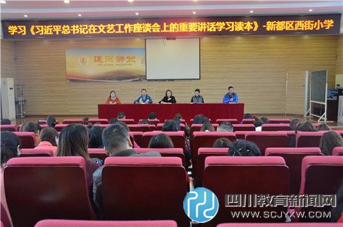 四川教育新闻网成都12月7日讯(周佳 通讯员 魏小梅) 2015年12月3日,西街小学组织全体党员和入党积极分子在罗永清副校长的带领下,认真学习了《习近平总书记在文艺工作座谈会上的重要讲话学习读本》。《读本》内容丰富、观点鲜明,语言生动、深入浅出,为我校党员教师学习讲话精神提供了重要参考。我校党支部一定会坚持学用结合,把讲话精神贯穿融入到教育教学之中,多出精品、多出人才,为开创新都文艺繁荣发展的新局面作出应有的贡献。