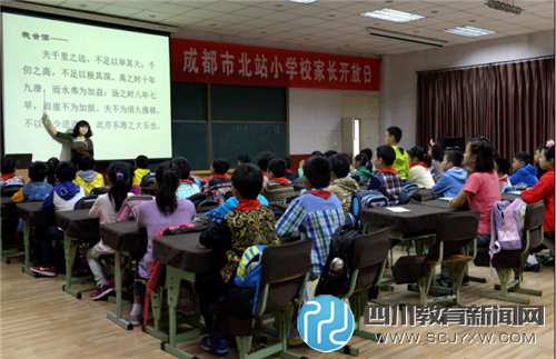 四川教育新闻网成都12月8日讯(陈海燕) 秋日的阵阵凉意,抵挡不住北站小学四年级全体师生浓浓的热情。在学校领导、老师们的精心策划、准备下,10月26--29日“四年级家长开放日活动”如期举行。此次家长开放日活动旨在与家长沟通、探讨教育孩子的方法,共同关心孩子的成长,加强家校双方的交流。