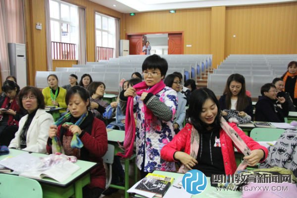 四川教育新闻网成都12月14日讯 初冬时节,为了让老师们更靓丽,为初冬增添色彩,成都市营门口小学工会于11.19下午组织了“相约美丽——丝巾的系法与搭配”的专题讲座。主讲人是能干的巧手女教师刘璐涵。刘老师精心准备,示范,讲解,老师们积极性非常高,或跟着步骤做,或同伴互助,功能室里洋溢着热闹、温馨、喜悦的氛围。“相约美丽”,做一个美丽的教师,我们一直在行动。