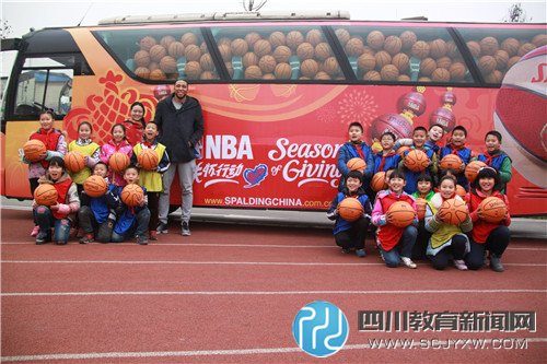 四川教育新闻网成都1月19日讯(贾元东 通讯员 江峡) 2016年1月19日上午,NBA关怀行动走进熊猫路小学,肖恩马里昂也为学校的同学们送来了篮球,并与学校学生一起迎新春,过新年。
