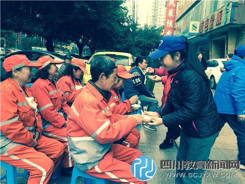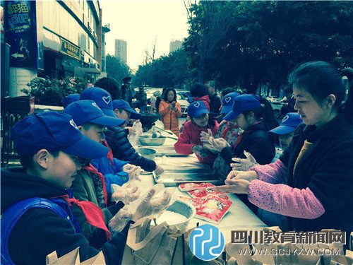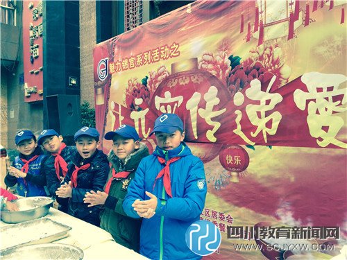 四川教育新闻网成都2月23日讯(孙林馨 通讯员 袁原) 2016年2月22日,成都市科华中路小学五年级的学生志愿者们在学校老师的带领下参加了魅力锦官系列活动之“让元宵传递爱”活动。本次活动,以践行社会主义核心价值观为目标,以元宵节为契机,学校通过与锦官新城社区、四川卞氏菜根香餐饮集团联合开展。鼓励和引导学生以志愿者的方式通过亲手包元宵、煮元宵,并将这些元宵送到本社区的环卫工人、守车人等一线群体,表达我们对这些辛勤劳动,服务大家的劳动者的尊重、感谢和关爱,以及社区残疾人代表和困难家庭代表,为他们送上节日的祝福。