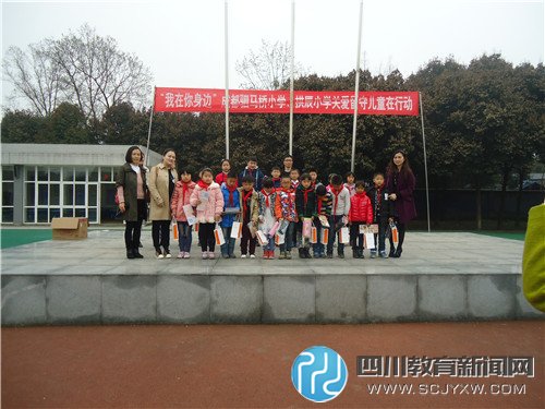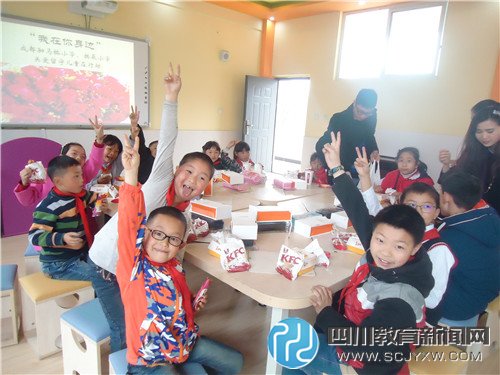 本次活动主题为“我在你身边”成都驷马桥小学、拱辰小学关爱留守儿童在行动,活动仪式上,拱辰小学的孩子展示了朗诵《我是幸福的留守娃》和校园舞《青春修练手册》,驷小向拱小20名双亲在外地的留守学生捐赠了学习用品。最后,驷小董校长和志愿者老师,拱小毛校长和陶主任一起陪20名留守学生吃肯德基。孩子们感受到爱的温暖,可开心了,纷纷表示要做幸福快乐的留守娃,常怀感恩之心,好好学习,天天向上。