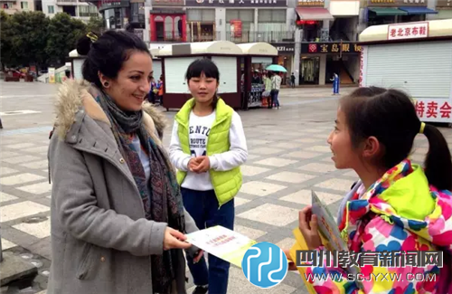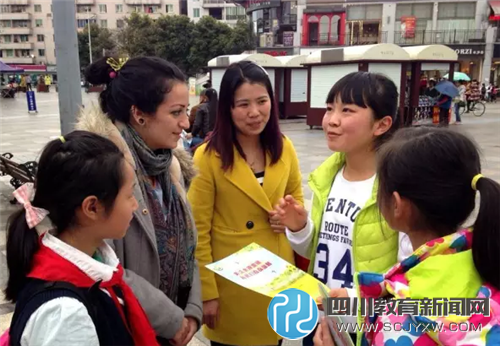 回到人流穿梭的城市,“五彩”志愿者们开始了自己的公益宣传活动。“关注全球变暖 从我们自身做起”这一主题,正是学校开展的“国际理解教育周”的一项重要内容。有了国际气候基准站的实地参观学习,志愿者们更增添了宣传气象工作重要性的责任感和紧迫感。瞧,孩子们正在和一位外宾作交流宣传,虽然语言交流不便,气候环境这一国际性话题还是很快赢得了理解和支持,一起愉快地合影留念。
