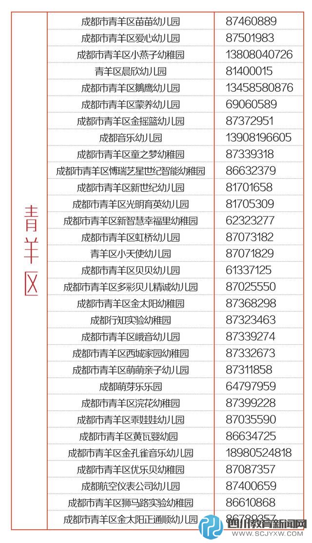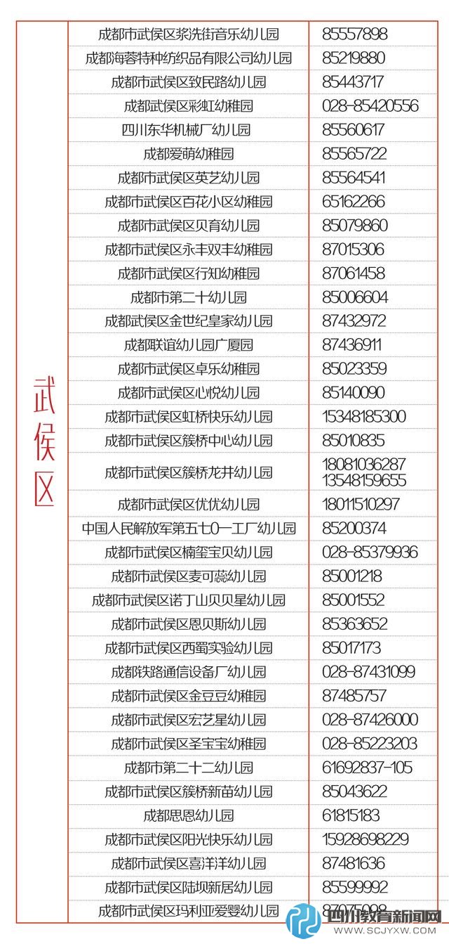参考:成都市教育局学前处公布的五城区、高新区(微博)公益性幼儿园名