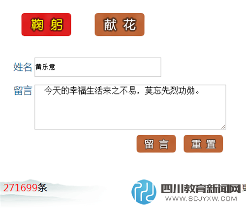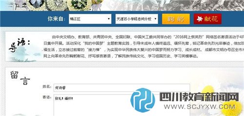 通过系列“网上祭英烈”活动,同学们对爱国主义精神的认识进一步加深,深刻认识到今天的幸福生活是无数先烈用鲜红和生命换来的,纷纷表示表示要以先烈为榜样,以无私奉献的革命精神投入到生活、学习、社会中。