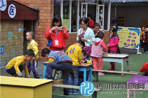 以班级为单位创编早操活动以及大班幼儿自由游戏区一直是五幼的特色课程。上午,贵阳市南明区的幼教同行们首先参观了大中小班的早操活动;接着跟随大班幼儿的脚步,参观了幼儿自由游戏活动,感受了五幼孩子们最真实的生活、游戏状态。