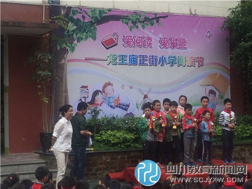 四川教育新闻网成都4月28日讯(袁虹) 4月27日,成都市龙王庙正街小学举行“爱阅读 爱攀登”主题读书日活动。在活动中,学校表彰了阅读平台排名前30名学生并分别给他们颁发“阅读新秀”、“阅读能手”和“阅读达人”的奖杯。 |
