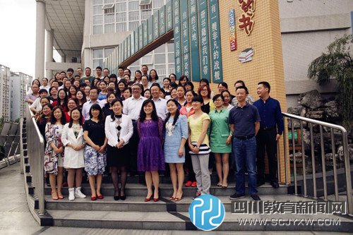 合影留念 朱老师与附小全体教职员工合影、参观了学校的新教育实验成果展板、儿童经济课程体验馆和新教育陈列馆,并为新教育陈列馆题写馆名。