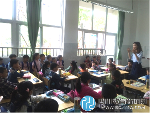 他们先和成华教科院附小全体师生一起参加了庄严的升旗仪式,参观了学校的大操场、行政楼、小花园、室内篮球场、沿着大楼梯来到教学区,还走进了课堂,和附小的孩子们一起上美术课、音乐课。