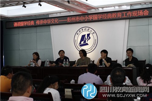 四川教育新闻网成都5月19日讯(赖波 通讯员 乔淑敏)为弘扬传统文化,推进国学经典教育工作,5月18日,以“诵读国学经典•传承中华文化”为主题的彭州市中小学国学经典教育工作现场会在利安小学举行。成都市教科院国学研究室主任罗晓辉、彭州市天彭镇副镇长叶华、彭州市教育局副局长蔡琳、彭州市教育局副局长韩洪韬、深圳狮子会泰安服务队员以及全市中小学学校分管国学经典教育工作领导和语文教研组长近200人相聚利小,共同领略源远流长的国学文化,分享古人的博大智慧。