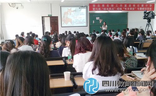 四川教育新闻网成都5月25日讯(贾元东) 5月24日下午,新都区石犀小学全体语文教师、香城小学全体语文教师、骆志菊工作室市区级核心成员、新都区各小学二年级语文骨干教师上百人集聚石犀小学多功能厅参加骆志菊工作室名优送教暨开展巧用“绘本趣点”,唱响“生本课堂”专题研讨活动。此次活动是骆志菊名师工作室努力 “寻趣觅点”,践行“趣点思想”的又一个阶段性成果分享交流会,在本次活动中“骆志菊名师工作室” 发挥辐射指导引领作用,从巧用绘本趣点出发,开启与会者奇妙的绘本之旅,唱响生本课堂主旋律的又一精彩篇章。