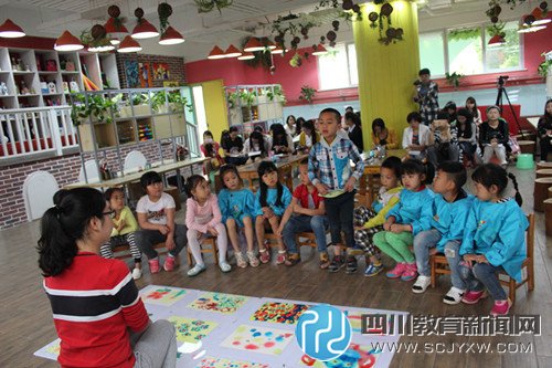 四川教育新闻网成都5月26日讯(黄小林) 为了积极响应天府新区第一届“未来课堂”教学节课堂开放周活动,白沙幼儿园于5月25日举办了课堂开放活动。本次教学展示由大班组的张进老师、中班组的寇玉萍和吉拉阿燕老师承担,三位老师分别展示了幼儿园的特色活动“湿水彩”、中班幼儿绘本教学及户外区域游戏活动,观摩教师参与听课、评析。
