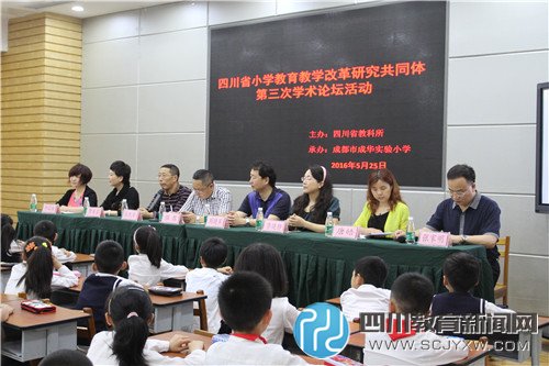四川教育新闻网成都5月27日讯(贾元东) 5月25日,四川省小学教育教学改革研究共同体(成都片区)第三届学术论坛活动在成华实验小学阶梯教室召开。此次论坛活动,以语文学科核心素养的培育为主题进行深入的探讨和交流。活动由四川省教科所主办,成华实验小学承办。四川省《教育科学论坛》杂志主编崔勇、四川省语文教研员刘晓军老师、绵阳师范学院张先华教授、成华区教育局小教一科李晓静科长、成华区教师进修校曹秦蓉书记、成华区教师进修校唐皓副校长、成华区教师进修校科研部邹昌淑主任以及语文教研员等莅临现场。来自共同体六所成员学校的各位校长以及三百多名老师们参加了论坛活动。