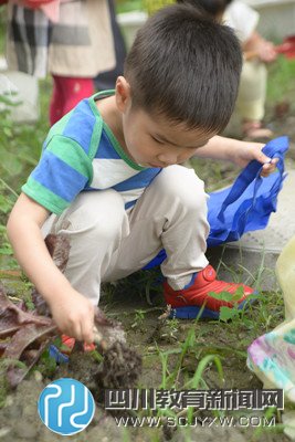 体验劳动 让孩子的“六一”更有意义 在六幼龙嘴园区的后门,有着一片大大的空地,在老师们的奇思妙想下,这儿成为了孩子们现在的一块宝地------种植园区。空心菜、南瓜、小麦、紫生菜、向日葵等等农作物都在这里茁壮的生长着,小朋友们在这里可以随时观察每一种农作物的生长变化。随着夏日的到来,这些蔬菜也到了收获的季节。 “小朋友们,你们最喜欢什么蔬菜呀?”“你们知道紫生菜可以用来做什么吗?”“爸爸妈妈们有谁知道紫生菜应该怎样采摘吗?”······在老师的循循善诱下,这些4岁左右的孩子们兴致勃勃地听着有关紫生菜的介绍,并在家长的带领下开始了采摘。不一会儿,地上,墙上的紫生菜就都装进了他们的篮子里。”分菜、洗菜、制作汉堡,尽管过程并不复杂,但是在父母的陪伴下,他们开心的体验着劳动带来的快乐。