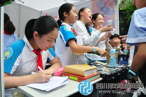 四川教育新闻网6月1日讯(孙林馨)5月31日,由四川省儿童少年基金会举办的“儿童公益街•义集”暨首批儿童志愿者联名卡发卡仪式在宽窄巷子东广场顺利开市,泡桐树小学的2000余名学生及老师和家委会成员参与活动,欢庆六一儿童节。
