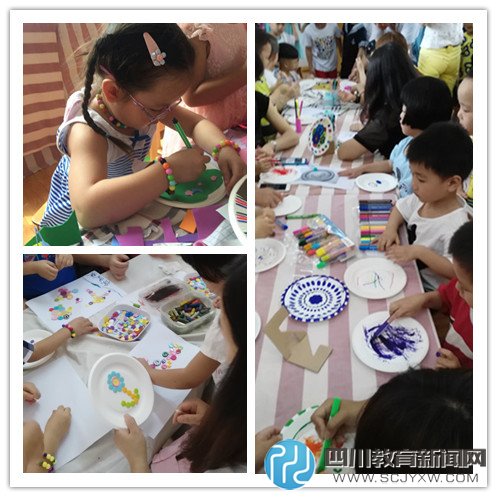 学校为孩子们精心准备了八个DIY项目,纸盘绘画、纽扣画创作、多彩T桖、七彩手链、美丽草帽…….等等。孩子们可以任意挑选自己想做的项目,只见一个个小小身影穿梭在各个教室里面,爸爸妈妈们也都乐意不绝的参与其中,共同和孩子创作出属于自己的作品。