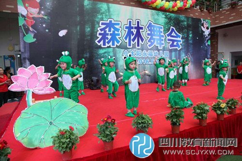 四川教育新闻网5月30日讯(孙林馨)5月27日下午,双流永福小太阳幼儿园里热闹非凡,到处洋溢着节日的气氛。这里正举行着一场“森林舞会”,不仅有小朋友扮演的各种小动物,连爸爸妈妈们也纷纷前来“凑热闹”,在舞台上装扮成各种动物表演节目,跟着小朋友一起过节日。