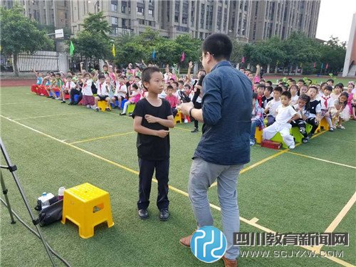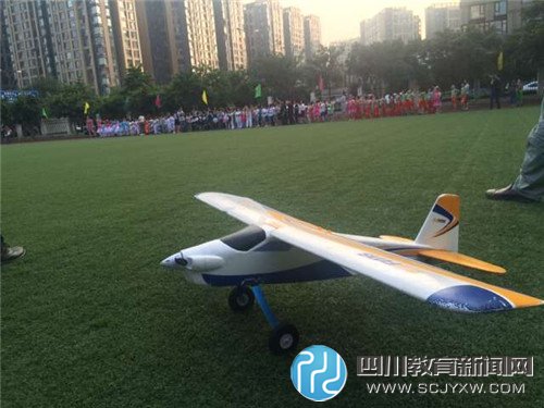 四川教育新闻网成都6月1日讯(王秋雨 贾元东 许杰)“这是一架单翼飞行机,它可以在空中演示各种飞行……”5月31日下午6点,在主持人的介绍下,一架架外观“霸气”的航模从草场上起飞,呼啸在天空中。成都市高新区芳草小学南区“七彩童年·花开芳草”六一暨首届戏剧节由此开幕了。南区全校师生和200多名家长一起欢庆了这一快乐时刻。