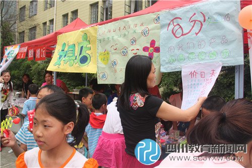 四川教育新闻网成都讯(贾元东) 六一儿童节是特殊的一天,五桂桥小学的校园里不再是书声琅琅,而是到处充满了吆喝声、叫卖声、音乐声和孩子们的欢笑声;校园里、操场上全是摊位,2.1班的“花花世界”、2.4班“咕噜咕噜小铺”、3.4班“缤纷鲜果吧”、5.3班“食全食美”……每个班一个摊位,简直是琳琅满目;孩子们有组织卖东西的小贩,有招揽顾客的宣传员,有维持秩序的治安员,有收银员,更多的是快乐购物的顾客;家长代表们有的帮着做买卖,有的忙着照相,还有的也掏出了“大钞”照顾孩子们的生意。每个人的脸上都笑开了花。