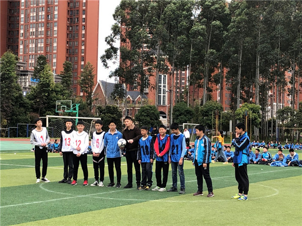 暖暖的春风使思源学子的比赛热情高涨,他们早早地来到比赛场地进行赛前热身,想要在这片熟悉的绿茵赛场一展风采,班主任带领全体学生为场上的足球队员们呐喊助威。