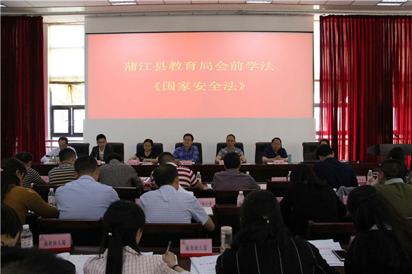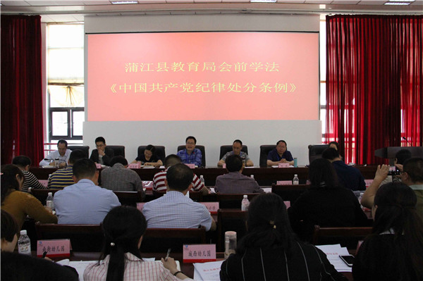 4月22日下午,蒲江县教育局在一楼会议室召开中心组(扩大)学习会,组织学习了新修订的《中国共产党纪律处分条例》和《国家安全法》。蒲江县教育局中心组成员,机关全体人员和各中小学、幼儿园校长园长参加会议。