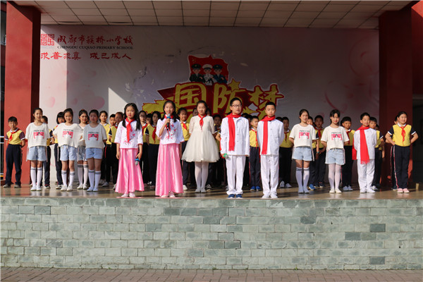 2019年4月22日上午,成都市簇桥小学校5.6班进行了主题为“国防梦 少年行”的国旗下讲话活动,同学们采用了朗诵、合唱、舞蹈等方式向全校师生普及了有关国防的知识内容。