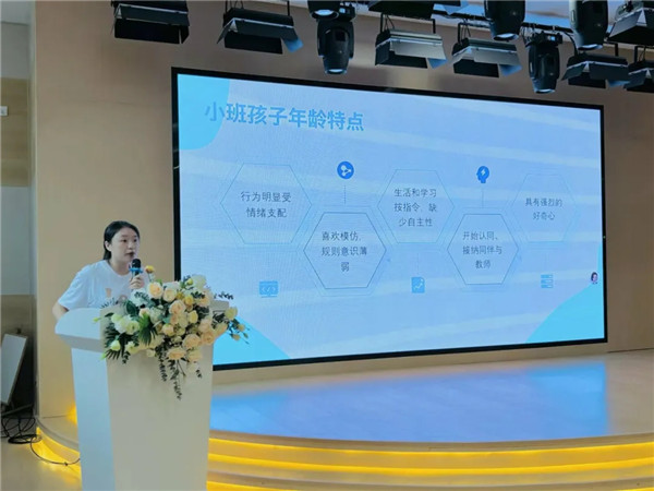 中班组老师们从班级情况分析、孩子年龄特点、课程实施以及本学期的重点工作向家长们做了详细讲解。