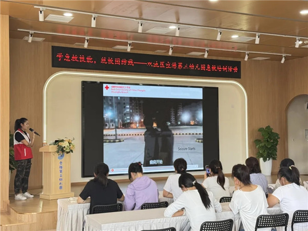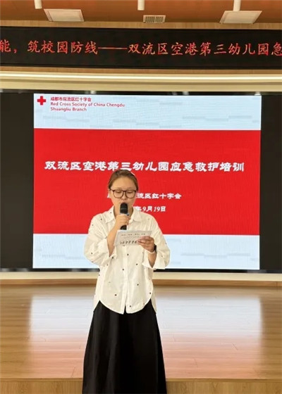 为丰富幼儿园教职工的医疗急救常识,增强急救技能,提升在突发事件中的自救互救能力,成都市双流区空港第三幼儿园于2025年9月19日邀请双流区红十字会急救培训周老师来园开展急救技能培训活动。