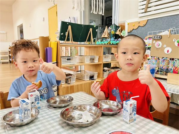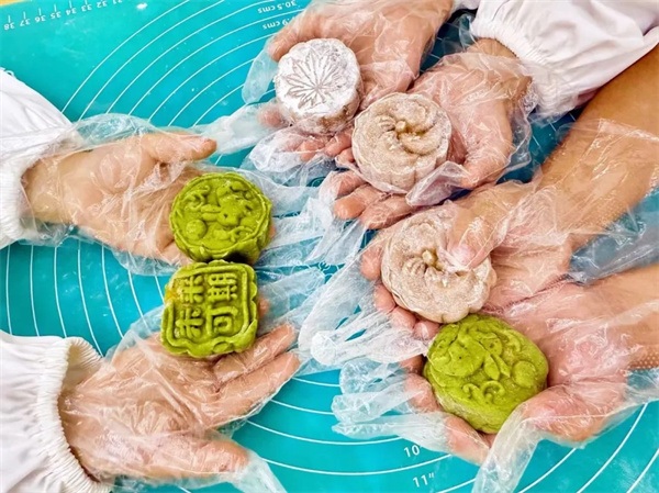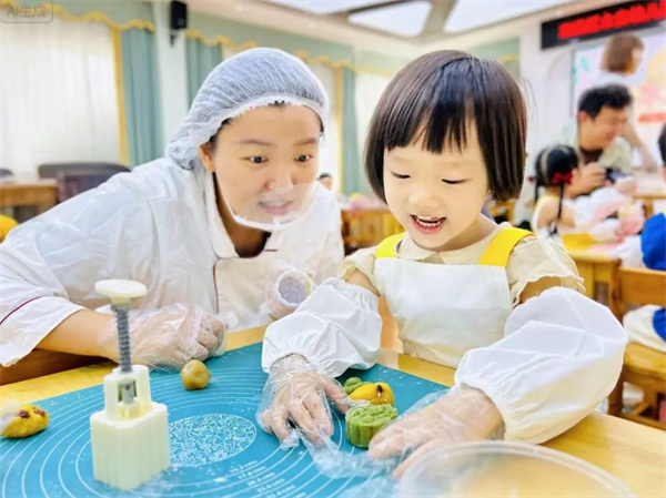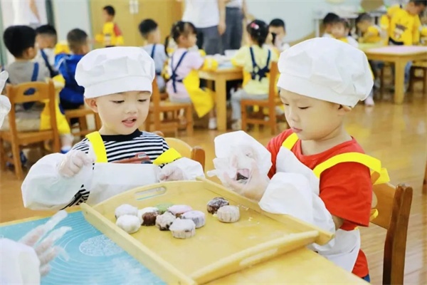 对小班的萌娃们来说,没有比亲手做月饼更新奇的事了!孩子们眼中充满了好奇与兴奋。在老师的指导下,他们学习揉、捏、包、压模,最终成功做出了属于自己的小月饼。这个过程不仅锻炼了孩子们的手部精细动作,更让他们在劳动中品味到中秋的甜蜜与分享的快乐。