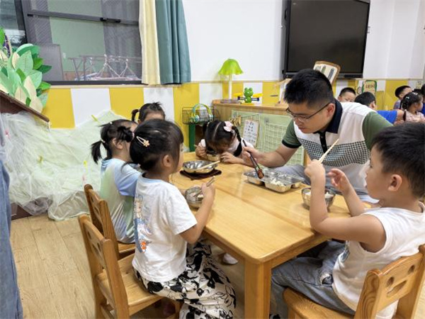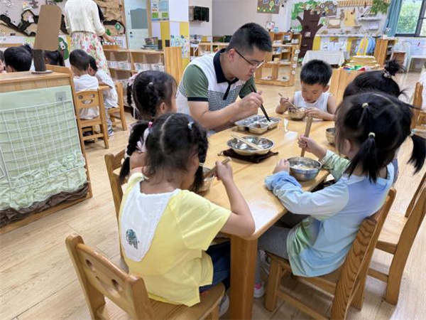 用餐过程中,老师会耐心询问每个孩子的需求,引导大家“按需添餐”,还会教小朋友们把掉落的食物捡进餐盘,养成不浪费粮食的好习惯。等到孩子们用餐结束还主动把空餐盘、空勺子拿回分餐桌,一张张干净的餐桌,成了教室里最温暖的风景。