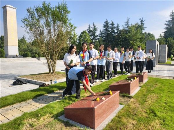 紧接着,师生代表神情肃穆走近烈士纪念碑,大家驻足静立,目光庄重地瞻仰着这座镌刻着英雄过往的丰碑。静静瞻仰后,又一同前往烈士陵园墓地,怀着对英烈的深切敬意,将鲜花轻轻献于墓前,以此寄托哀思。随后,孩子们则俯下身,用干净的毛巾小心翼翼地细细擦拭每一座烈士墓碑,指尖的动作满是敬意。