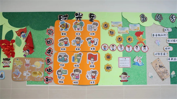 “会说话”的校园环境是重要的教育载体,每个班级的“时光里”汇聚了孩子们的“爱国心”。