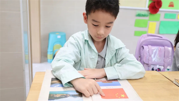 国家象征教育通过仪式体验融入低年级学生的认知。以“与国旗合影”活动为载体,在庄重的仪式场景中,帮助学生初步建立对国家符号的直观认同与内心尊重。